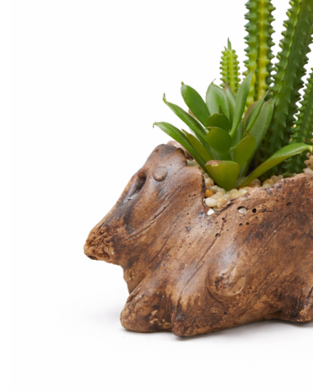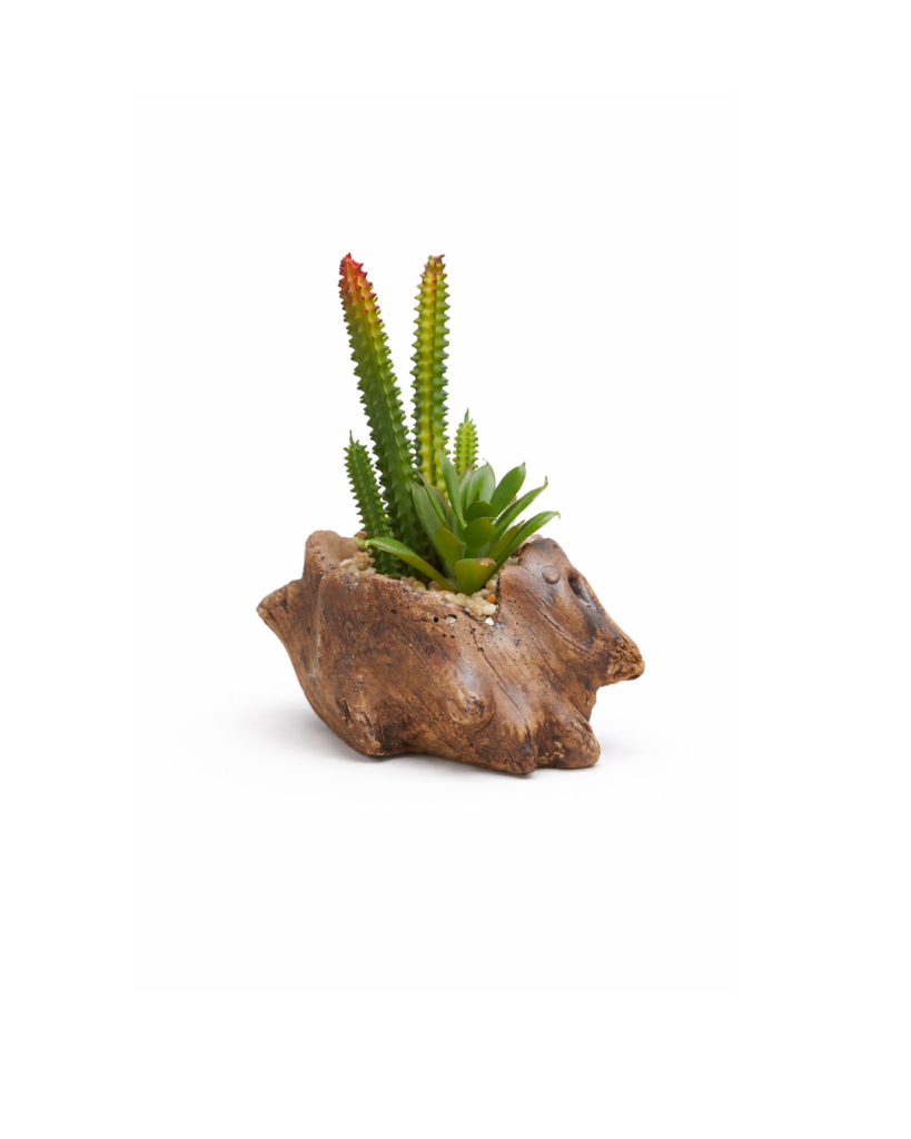 Ağaç Kökü Saksıda Sukulent Arajmanı sadece gerçek çiçekler gibi güzel bir görünüme sahip olmakla kalmaz, aynı zamanda taze çiçeklerden daha uzun ömürlüdür.